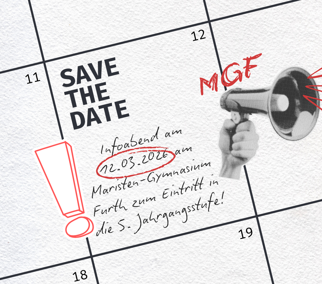 Am Donnerstag, den 12.03.2026, laden wir ab 18 Uhr alle Eltern sowie Schülerinnen und Schüler der 4. Jahrgangsstufe herzlich zu unserem Informationsabend zum Eintritt in die 5. Jahrgangsstufe in die Mensa des Maristen-Gymnasium Furth ein.