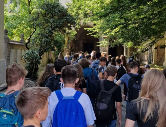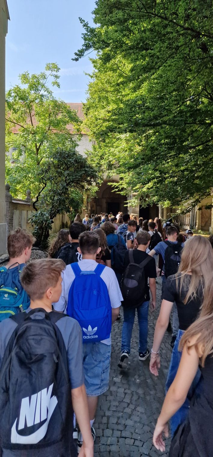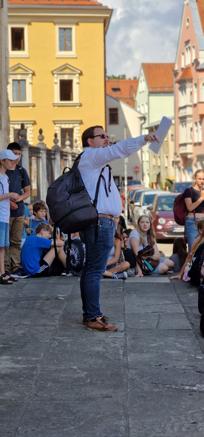 Am vergangenen Dienstag, den 15. Juli 2025 ging es für die gesamte 7. Jahrgangsstufe (knappe 100 Schülerinnen und Schüler!) in Begleitung von Frau Bauer, Frau Drechsler, Frau Malki-Schneck, Herrn Molter, Herrn Schiffermüller, Frau Schwoerer und Herrn Wolf vom Hauptbahnhof Landshut aus mit dem Zug nach Regensburg. Der Schwerpunkt der Exkursion lag vor allem auf den drei großen historischen Baustile Romanik, Gotik und Barock.