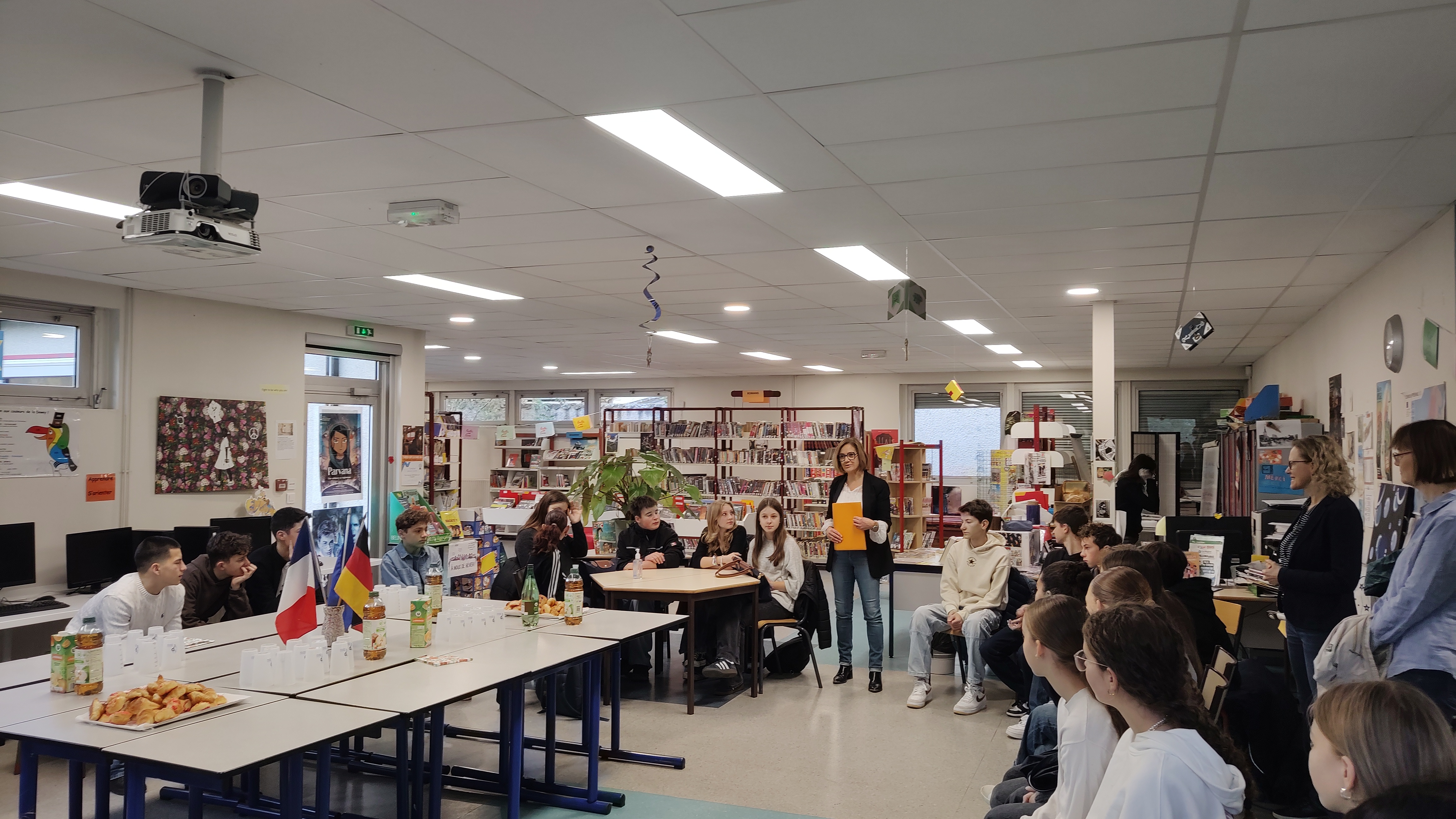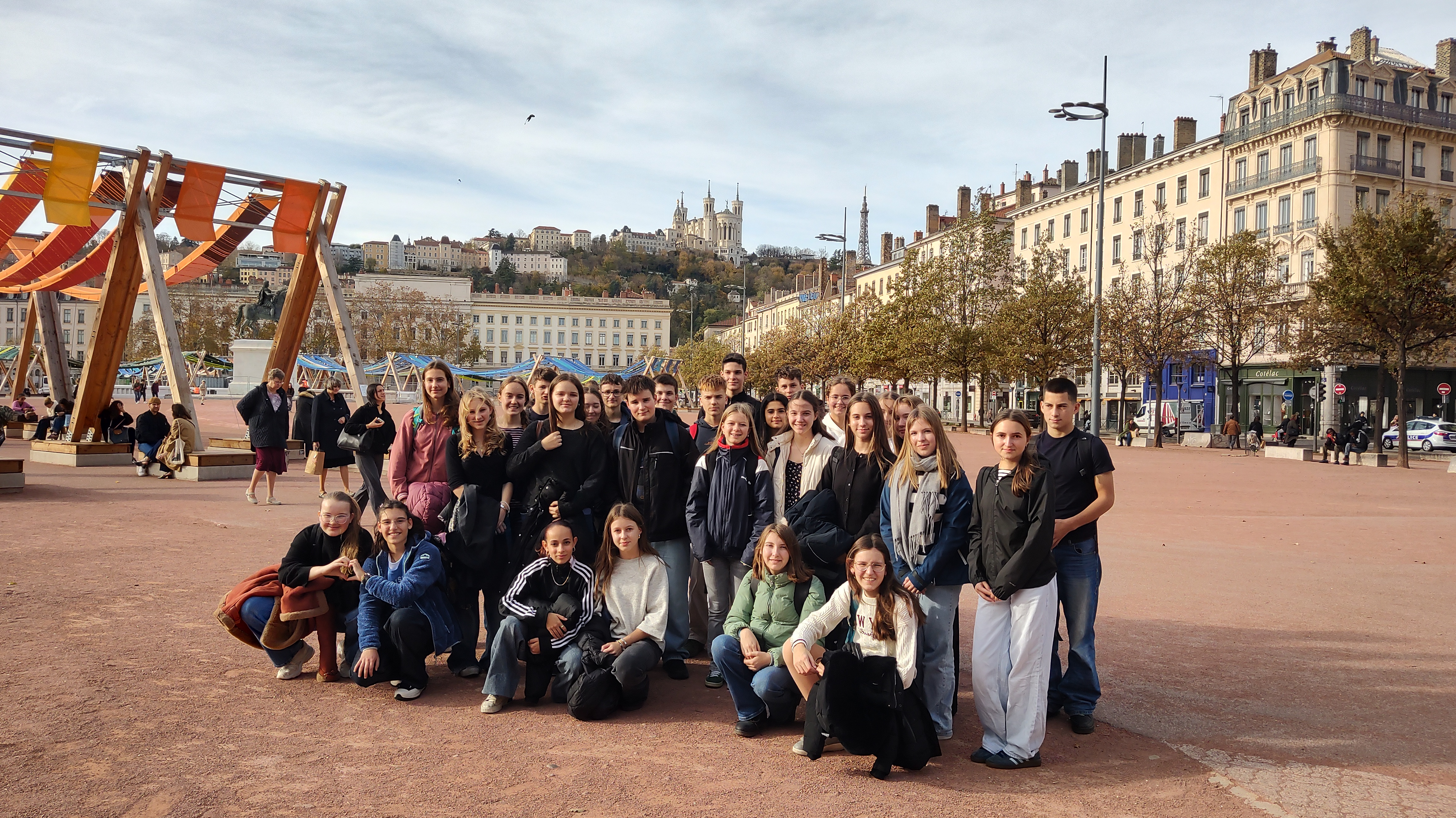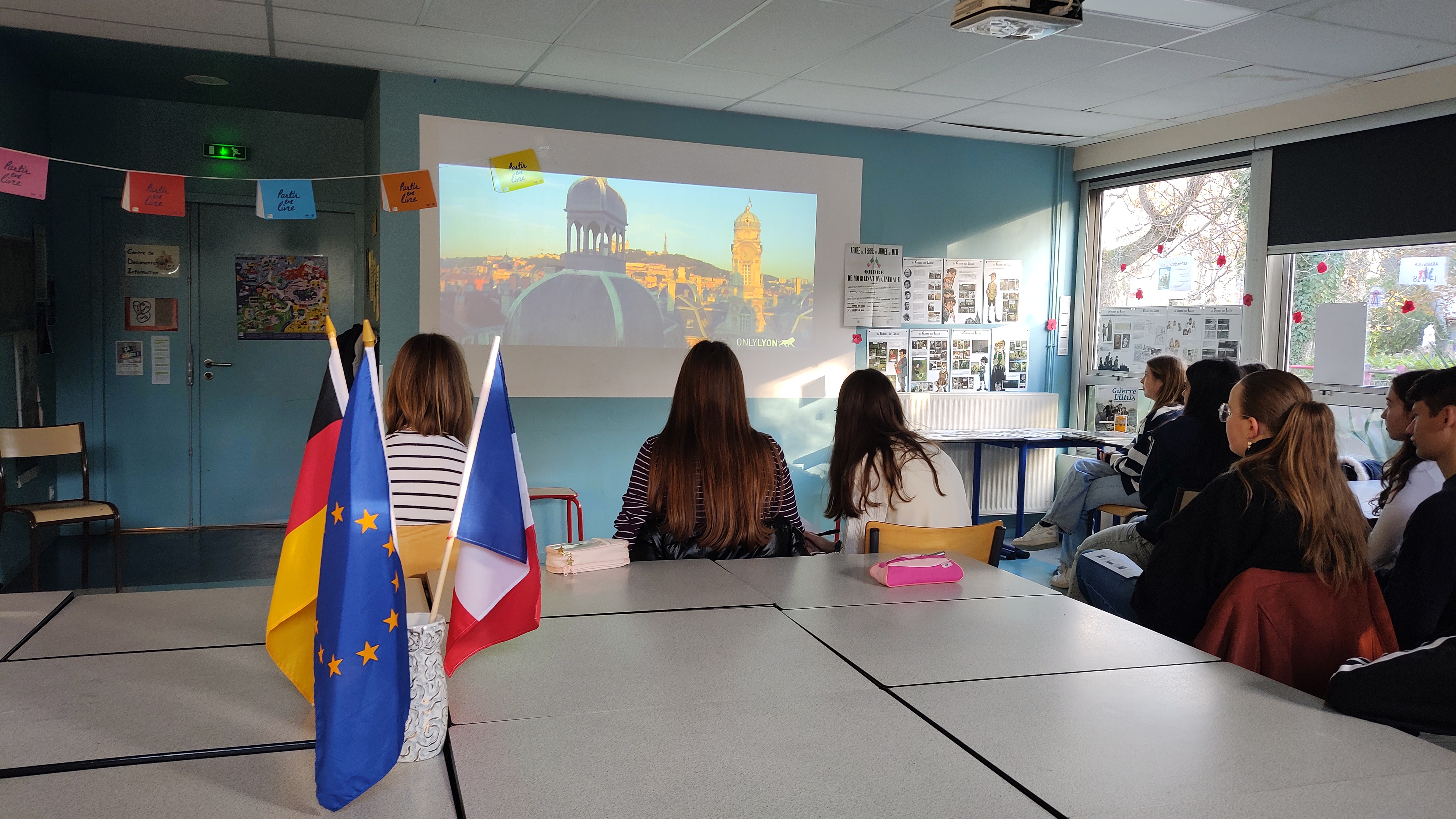 28 Schülerinnen und Schüler des Maristen-Gymnasiums sind gut in Lyon angekommen und wurden dort herzlich von ihren Austauschpartnerinnen und -partnern empfangen. Gleich am ersten Tag begleiteten sie diese in den Unterricht und erhielten mithilfe eines kurzen Films spannende Informationen über die Stadt Lyon.