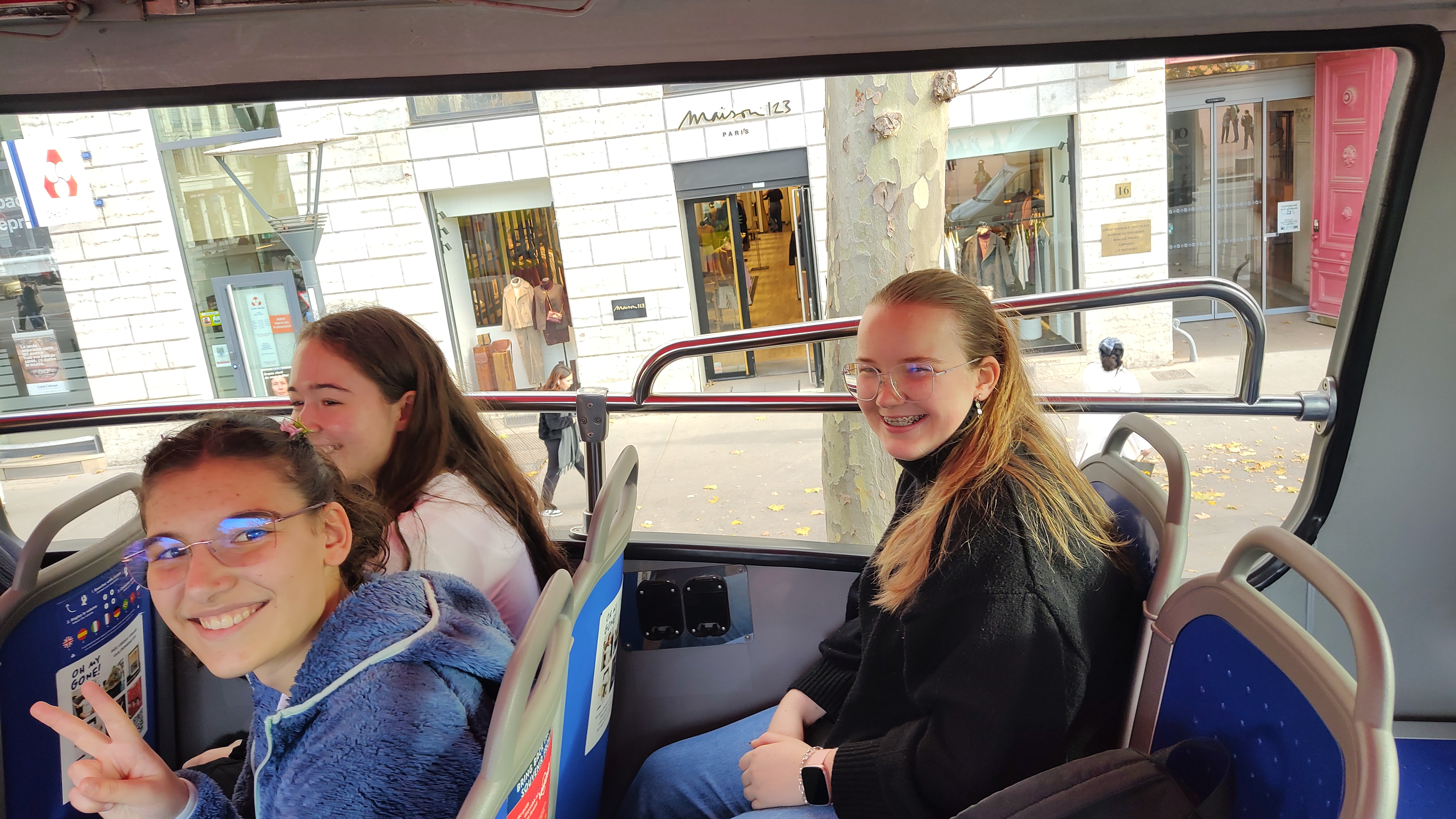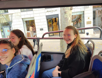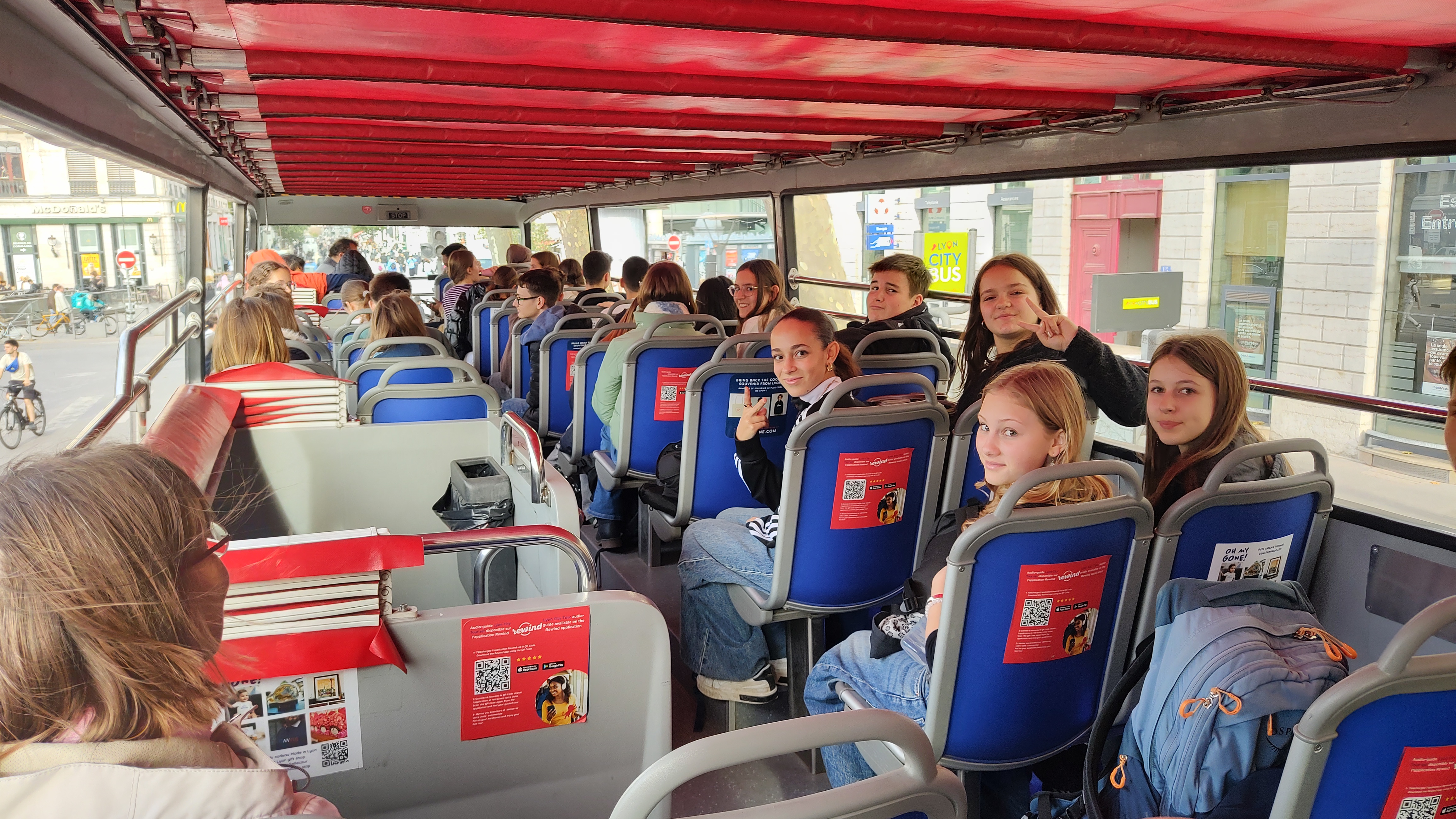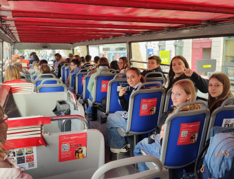 Am Nachmittag stand eine Stadtrundfahrt mit dem Doppeldeckerbus auf dem Programm - eine tolle Gelegenheit, erste Eindrücke von der neuen Umgebung zu sammeln. Begleitet wird die Gruppe von den Lehrkräften Frau Beelte, Frau Kaiser und Frau Licht.