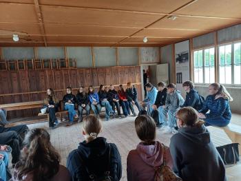Im Inneren einer Baracke konnten die Bettenlager und mangelhaften Sanitäranlagen angeschaut werden und man konnte sich vage vorstellen, unter welch menschenunwürdigen Zuständen die Inhaftierten leben mussten. Sichtlich bewegt besichtigten die Schülerinnen und Schüler die Gaskammer und die Verbrennungsöfen.