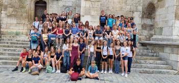 Für die Gotik kam natürlich nur der berühmte Regensburger Dom in Frage, dessen circa 600 Jahre andauernde Baugeschichte, die Schülerinnen und Schüler auf den Treppen erklärt bekamen, bevor sie das Bauwerk selbst von innen bewundern durften.
