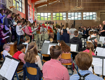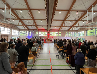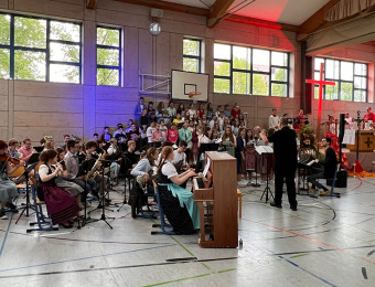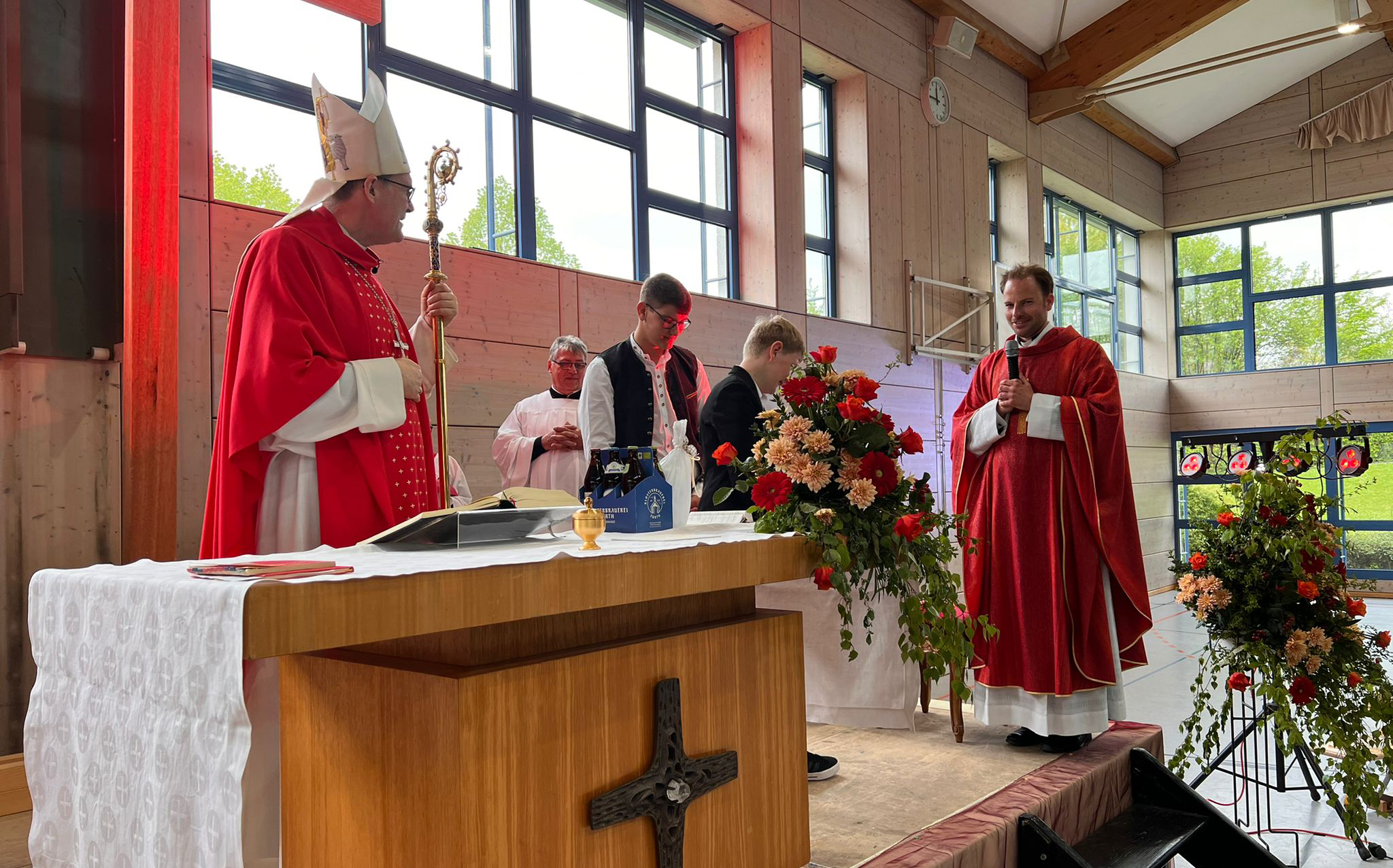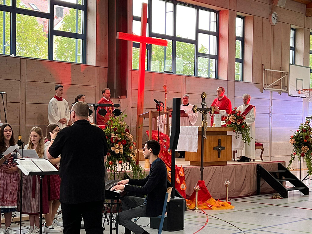 Ein besonderer Tag eines jeden Katholiken ist der Empfang der Firmung. Und einen besonderen Gottesdienst erlebten hier vergangenen Freitag Jugendliche und Kinder aus der Pfarrei Furth und den umliegenden Gemeinden. Weil nämlich die zur Verfügung stehenden Pfarrkirchen zu klein waren, wurde der Firmgottesdienst kurzerhand in die Turnhalle am Maristen-Gymnasium verlegt. Der Regensburger Weihbosch Dr. Josef Graf firmte zahlreiche Mädchen und Buben und zelenbrierte den Gottesadienst zusammen mit Furths neuem Pfarrer Martin Popp. Einige Schülerinnen und Schüler waren zudem als Ministranten mit dabei. Die Turnhalle war jedoch kaum wiederzuerkennen, hatten sich die Organisatoren doch allergrößte Mühe gegeben, den Ort, wo noirmalerweise Fußball gespielt oder geturnt wird, in ein stimmungsvolles Kurzzeit-Gotteshaus zu verwandeln. Viele Strahler hüllten die Turnhalle in warmes Licht, auf der Bühne stand der ehemalige Volksaltar der Klosterkirche. Und auch musikalisch brachten sich unsere Schülerinnen und Schüler – zahlreiche MGFler wurden auch gefirmt – in den Gottesdienst mit ein.