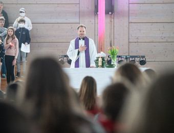 Pfarrer Martin Popp feierte am Freitagvormittag seinen ersten Ostergottesdienst mit den Schülerinnen und Schülern am Maristen-Gymnasium.