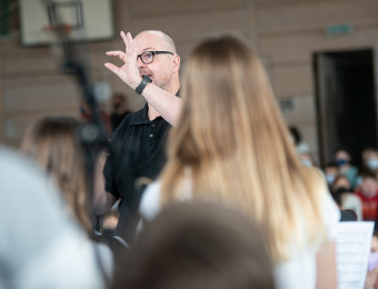 An diesem letzten Freitag vor den Osterferien war es nach langer Zeit endlich wieder so weit: Der Gottesdienst hat wieder in seiner gewohnten Form in der Turnhalle, live und in Farbe – wenn auch in zwei Durchgängen, damit nicht alle Schülerinnen und Schüler zugleich in der Turnhalle sind – stattgefunden. Nach gut zwei Jahren Video-Streaming-Gottesdienst hat dies die Stimmung vor den Ferien noch einmal aufblühen lassen – passend zum Thema „Osterblühen“. Dabei wurden zu Beginn des Gottesdienstes eher sanftere, nachdenklichere Töne angeschlagen. Symbolisch wurde in einer kleinen Feuerschale ein Zettel aus der in der Schule errichteten Klagemauer verbrannt. Ein Zettel, eine Sorge, ein Bedürfnis, eine Angst aus vielen, die unsere Schülerinnen und Schüler während der vergangenen Wochen an die Klagemauer herangetragen haben, um alles, was sie belastet, symbolisch loszuwerden. Denn mit diesem Loslassen kann aus der Asche der verbrannten Lasten auch wieder eine neue Hoffnung erblühen – um es mit den Worten einer Schülerin des Gottesdienstteams zu sagen. Eine Hoffnung, die im nahenden Osterfest und im Glauben an Jesu Auferstehung noch ganz andere Blickwinkel aufzeigen kann. So kamen dann auch mit den Fürbitten zur Veranschaulichung dieser neu aufkeimenden Hoffnung eine Reihe von Blumen zu der Feuerschale mit dem verbrannten Zettel aus der Klagemauer hinzu. Zum Beispiel wurden Samen für Sonnenblumen gebracht. Denn Sonnenblumen lassen ebenso wie viele Menschen einige ihrer Talente – nämlich ihre Kerne, aus denen man wertvolles Öl gewinnen kann – im Verborgenen. Auch Primeln kamen hinzu, um unseren ukrainischen Gastschülern sowie allen anderen, die unter dem Ukraine-Krieg leiden, einen Hoffnungsschimmer zu schenken, dass ihre Seele und ihre Heimat wie Primeln wieder neu aufblühen und sie mit ihren Familien wieder Frieden finden werden. Mit dieser Wendung hin zur Hoffnung und damit zum Leben fand dann der Gottesdienst im letzten Lied „Laudato Si“ sein blumig gestimmtes Ende.