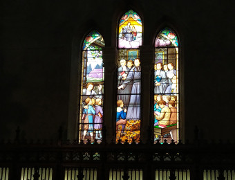 Körperlich gestärkt durch ein Mittagessen, zusammen mit den freundlichen Brüdern in Le Rosey, und geistig gestärkt durch eine kleine Andacht in der dortigen, mit imponierenden bunten Glasfenstern versehenen, Kirche, ging es am Nachmittag nach La Valla. Hier befindet sich der Gründungsort der Maristenbrüder und die erste Schule. Für das obligatorische Gruppenfoto nahmen alle Teilnehmer um den historischen Tisch Platz, an dem bereits Marzellin mit seinen Brüdern gesessen hatte.