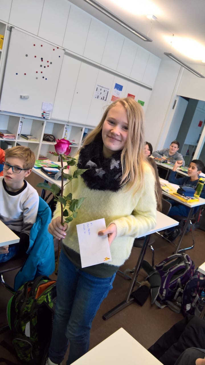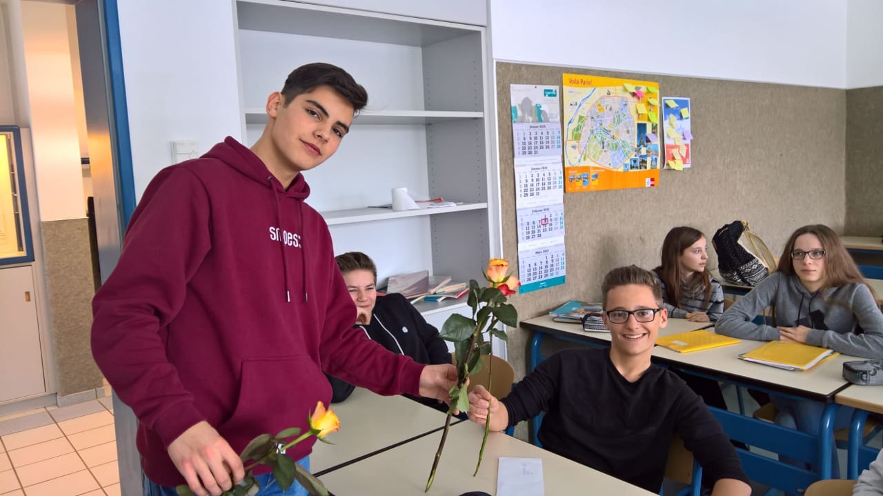 Wie kann man jemandem relativ einfach seine Zuneigung zeigen? Mit der Rosenaktion der SMV zum Valentinstag war das auch heuer wieder relativ einfach. Ähnlich der Nikolausaktion im Dezember hatten die Schülerinnen und Schüler die Möglichkeit, sich gegenseitig eine Fair-Trade-Rose zukommen zu lassen – anonym oder wahlweise versehen mit einer kleinen Botschaft. Und auch an Freunde an den anderen Gymnasien in Landshut konnten unsere Schüler eine kleine Aufmerksamkeit schicken. Am Freitagvormittag waren nun unsere Schülersprecher und einige Helfer aus der SMV unterwegs, um die zahlreichen Rosen zu verteilen. Nicht selten gab es dabei glückliche, aber auch überraschte Gesichter.