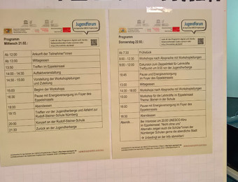 Die inhaltliche Arbeit fand in Form von Workshops und Exkursionen statt, die auch die Möglichkeit zur Auseinandersetzung und Diskussion mit anderen Schülerinnen und Schülern bot. Die so geknüpften Kontakte sollen auch eine Grundlage für zukünftige schulübergreifende Aktivitäten bilden.