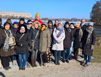 Auch für die UNESCO-Schulkoordinatoren wurde ein aufwändiges und abwechslungsreiches Programm geboten, dessen Höhepunkt eine ausgedehnte Führung durch das ehemalige Reichsparteitagsgelände in Nürnberg war. Die angsteinflößende Architektur wurde analysiert und „ergangen“ und vor allem wurde erläutert, was mit dem Gelände nach 1945 geschah. Der Rundgang – bei eisigen Temperaturen! – über das weitläufige Areal machte die größenwahnsinnige Architektur und die Funktion der Reichsparteitage als Propagandaschau deutlich und die Teilnehmer erfuhren auch, wie die Stadt Nürnberg mit diesem Erbe umgeht. Heutzutage ist das Reichsparteitagsgelände ein nicht mehr wegzudenkender historischer Ort, der wertvolle Einblicke in die Wirkungsweise des Dritten Reiches liefert, auch und besonders für UNESCO-Projektschulen, die sich mit der Thematik Friedensforschung befassen.