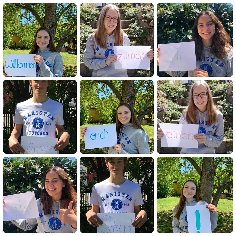 Die Aufregung war groß heute: Nach acht Wochen Abwesenheit heute die Schülerinnen und Schüler der 5. und 6. Jahrgangstufe wieder ihren ersten Tag am Maristen-Gymnasium – zumindest zur Hälfte. Denn für maximal 15 Mädchen und Buben pro Klasse endete die "Schule dahoam" und sie sahen nicht nur einen Teil ihrer Mitschülerinnen und Mitschüler wieder, sondern kamen auch in persönlichen Kontakt mit ihren Lehrkräften. Und am MGF waren wir bestens darauf vorbereitet: Alle Klassenzimmer waren so hergerichtet, dass die von staatlichen Stellen verordnete Maximalzahl an Schülern darin Platz fand, zudem wurden Vorkehrungen der Hygiene getroffen. In jedem Klassenzimmer liegen etwa bis auf Weiteres Einmalhandtücher aus, auch gibt es an verschiedenen Stellen automatische Desinfektionsspender.
