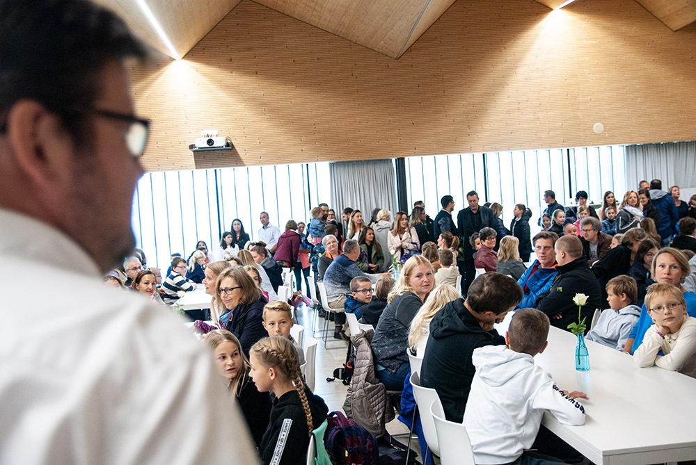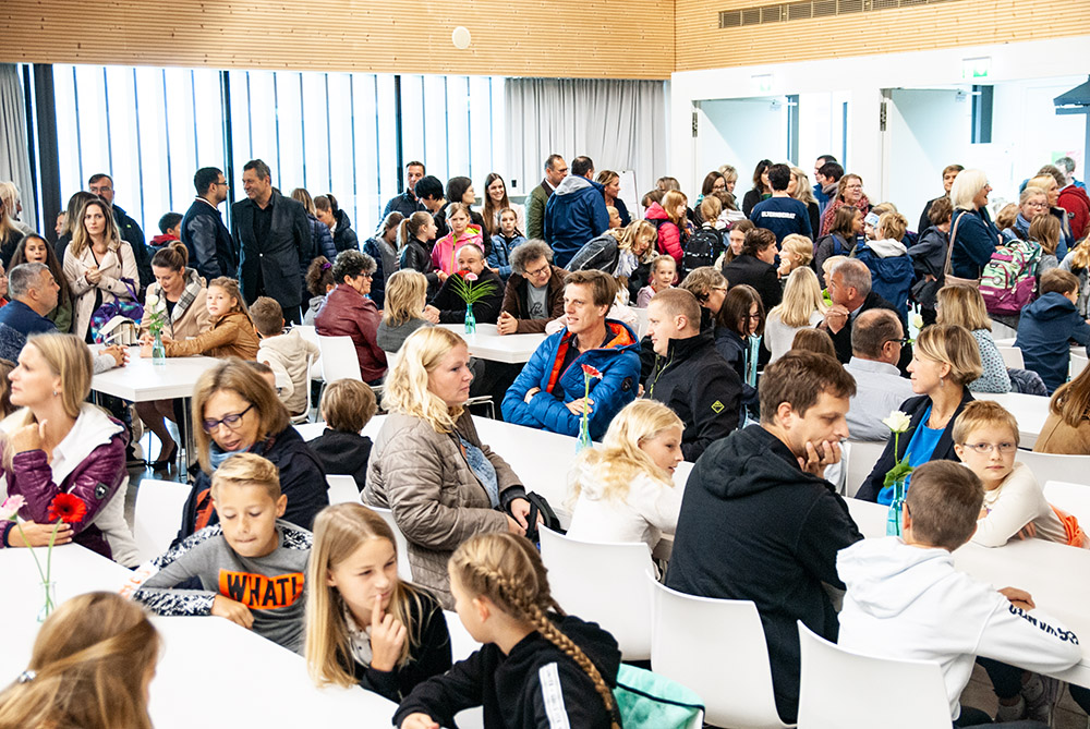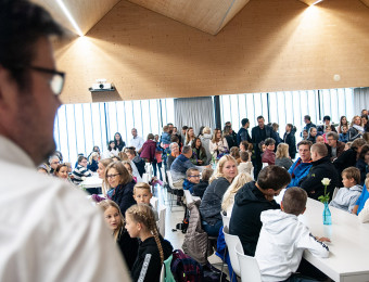 Voll war es heute, als Schulleiter Christoph Müller (vorne) die neuen Fünftklässlerinnen und Fünftklässler begrüßte.